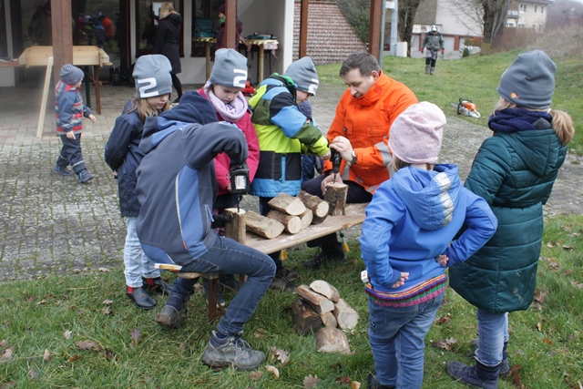Groß und Klein bauten zum Jubiläum der Kinderfeuerwehr ein Insektenhotel in Emmenhausen