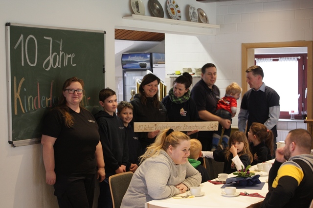 Ab 14 Uhr trafen dann auch die Dorfbewohner und Mitglieder der Feuerwehr ein. Die Kinderfeuerwehr organisierte zu ihrem 10-jährigen Bestehen ein Nachmittag mit leckeren Kuchen und Getränken. Kinderfeuerwehrwartin Kerstin Lahrsow und ihre Stellvertreterin Carina Hartmann bedankten sich bei den rund 40 erschienenen Gästen im Feuerwehrhaus für die Materialspenden zum Insektenhotel und den zahlreichen Kuchenspenden.