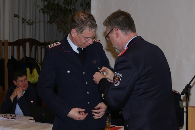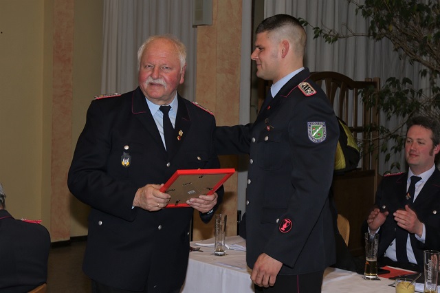 Vereinsvorsitzender Bastian Hellmich ernannte Willi Fricke zum Ehrenmitglied des Feuerwehrvereines und überreichte ihm seine Ehrenurkunde. Willi Fricke war elf Jahre lang Ortsbrandmeister, sechs Jahre Schriftführer und neun Jahre Seniorensprecher in der Feuerwehr Lenglern.