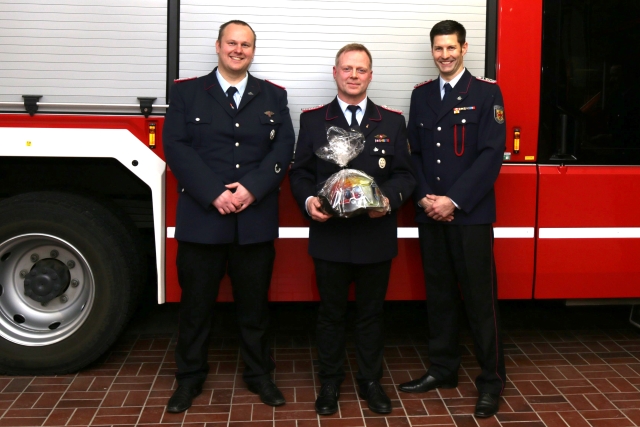 v.l.n.r. Ortsbrandmeister André Siebert, Michael Dzimalle, Dennis Rohmann