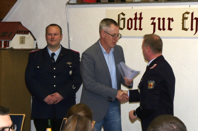 Insbesondere bei der jüngeren Beschaffung der beiden Löschgruppenfahrzeuge war Michael Dzimalle federführend tätig. Auf eigenen Wunsch hin legte er mit Wirkung vom 27.01.2023 sein Amt nieder. Als seinen Nachfolger konnte Bürgermeister Thomas Brandes den bisherigen Gruppenführer der Ortsfeuerwehr Dennis Rohmann auf der Ratssitzung am 03.03.2023 zum neuen stellvertretenden Ortsbrandmeister ernennen. Er überreichte die Ernennungsurkunde verbunden mit den besten Wünschen von Rat und Verwaltung.