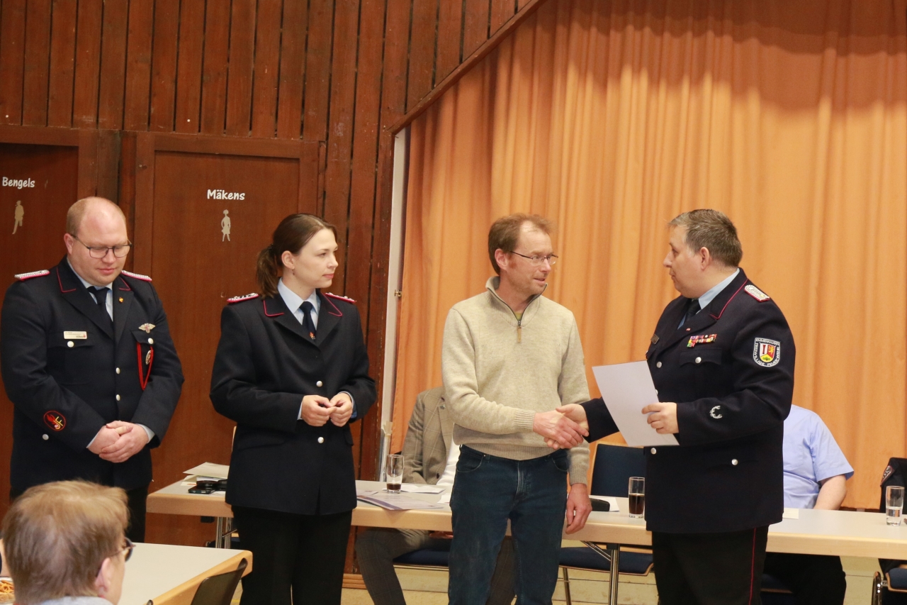 Vereinsvorsitzende Maren Hunger, berichtete von den Aktivitäten und Veränderungen im Feuerwehrverein. Aktuell habe der Verein 163 Mitglieder, wovon 31 Kameradinnen und Kameraden in der Einsatzabteilung, 6 Jugendliche in der Jugendfeuerwehr, 13 Kinder in der Kinderfeuerwehr und die restlichen als fördernde Mitglieder geführt werden. Im Vorstand stellte Hunger Thomas Konz als neuen Löschgruppenführer vor, der das Amt von Jan Hunger übernahmen. Jan Hunger hatte dies aus beruflichen Gründen abgeben müssen. Auch gab Jan Hunger die Funktion des Gerätewartes ab, welche nun von Jannik Oberdieck ausgeführt wird. Maren Hunger bedankte sich für seinen Engagement in den letzten Jahren.