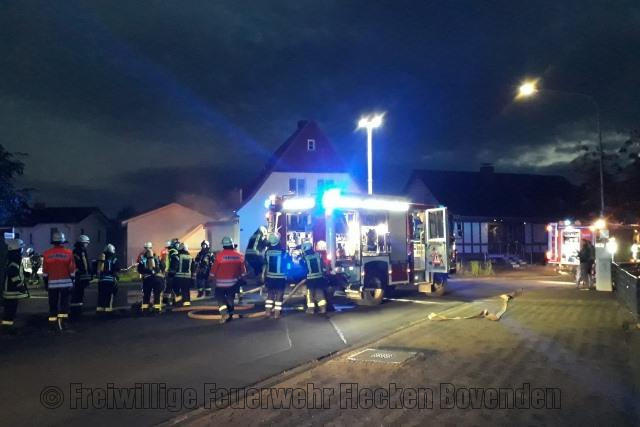 Lenglern – Um 19:11 Uhr alarmierte die Leitstelle die Freiwilligen Feuerwehren Emmenhausen, Harste und Lenglern zu einem Wohnhausbrand mit Menschenrettung. In der Angerstraße, im Ortsteil Lenglern, brannte direkt neben einem Wohnhaus Sperrmüll. Beim Eintreffen der ersten Einsatzkräfte hatten die Flammen bereits auf das Wohnhaus übergeschlagen und sich Brandrauch in den Zimmern ausgebreitet. Die Einsatzkräfte, unter Leitung von Gruppenführer Jan Stietenroth, teilten sich in zwei Einsatzabschnitte auf. Ein Abschnitt übernahm die Menschenrettung und Brandbekämpfung im stark verqualmten Einfamilienhaus. Im Gebäude befanden sich noch Personen, welche teils vom Fenster aus im Obergeschoss um Hilfe riefen. Mit mehreren Trupps unter Atemschutz wurden die Bewohner teils über Steckleiter oder mit Brandfluchthauben durch die Haustür gerettet. Draußen übernahmen Einsatzkräfte von Rettungsdienst und Feuerwehr die Betreuung der 5-köpfigen Familie. Im zweiten Einsatzabschnitt löschten Trupps unter Atemschutz den brennenden Sperrmüll im Garten. Gegen 19:50 Uhr wurde Feuer aus gemeldet und zurückgebaut.