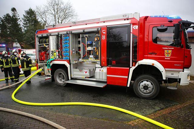 Bovenden – Am Sonntagmorgen brannte es in einem Nebengebäude im Kernort Bovenden. Der Brand brach in einer Sauna aus und griff weiter auf Dach und Fassade über. Menschen wurden nicht verletzt. Eine starke Rauchentwicklung und extreme Hitze erschwerten die Brandbekämpfung und das Vorgehen der Einsatzkräfte im Gebäude. Für eine bessere Sicht wurde das Nebengebäude im innen mit einem Akku-Druckbelüfter und von außen mit einem kraftstoffbetriebenen Druckbelüfter entraucht. Insgesamt sieben Trupps gingen unter schwerem Atemschutz mit einem C-Rohr in das Gebäude vor. Auch von Außen wurde der Brand mit zwei C-Rohren gelöscht. Mit zwei Wärmebildkameras wurden weitere Glutnester ausfindig gemacht. Verkleidungen wurden teils mit einer Rettungssäge geöffnet, entfernt und Glutnester abgelöscht.
